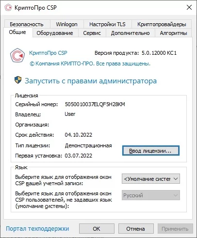 Демонстрационную лицензию КриптоПро CSP можно продлевать на демо-период сноваь:
