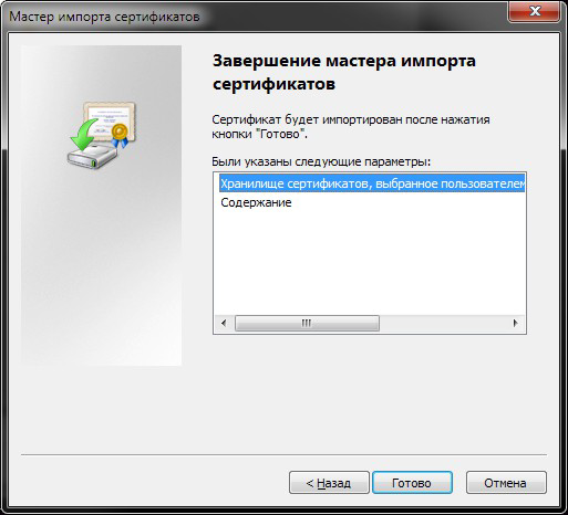 Процедуру импорта нужно повторить для каждого из сертификатов.