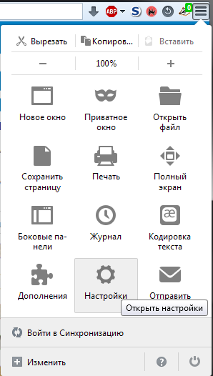 Пользователям Mozilla Firefox нужно открыть настройки браузера: