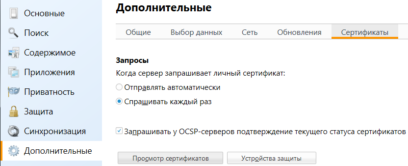 Открыть вкладки «Дополнительные», «Сертификаты» и нажать кнопку «Просмотр сертификатов»: