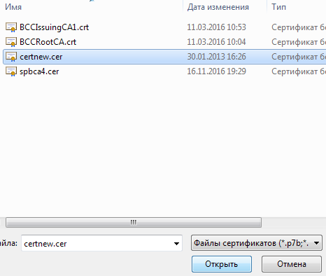 В Проводнике Windows выбрать очередной файл с сертификатом и нажать кнопку «Открыть»: