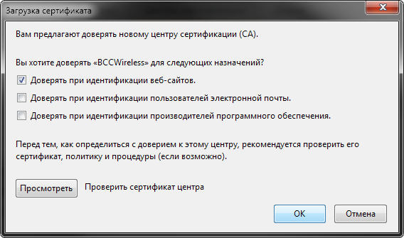 В окне «Загрузка сертификата» поставить галочку «Доверять при идентификации веб-сайтов» и нажать кнопку «ОК»: